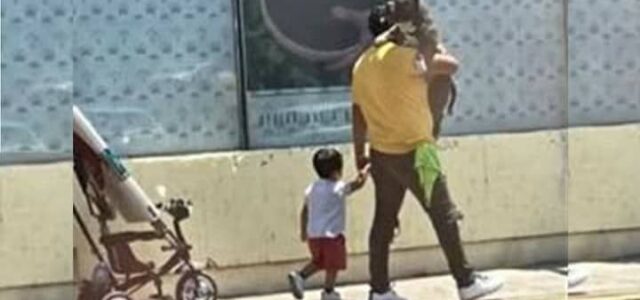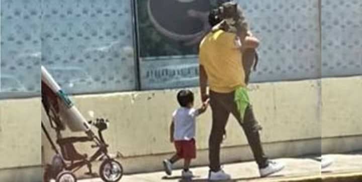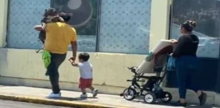La escena de la familia no dejó a los transeúntes indiferentes, de hecho, uno de ellos no resistió la tentación de sacar su dispositivo móvil y grabar lo que se encontraba ocurriendo.