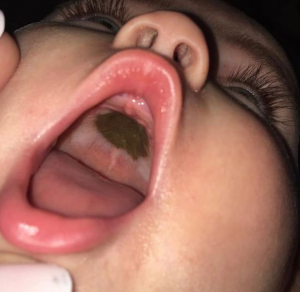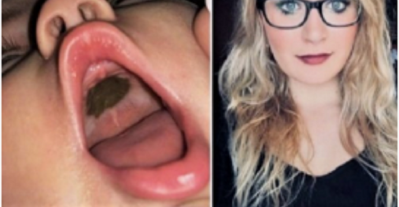 De tal forma le ocurrió a una mujer de Carolina del Norte, USA, que quedó en shock al conocer una colosal mancha oscura que cubría el interior del paladar de su niño recién nacido chiquita, Bella.Darian Depreta jugaba con su chiquita niño recién nacido cuando notó algo raro en el interior de su boca, tenía que ver con una repugnante mancha que abarcaba parte importante de su paladar. La mujer tuvo la intención de inmediatamente limpiarla y cepilló la boca de la criatura, sin poder removerla.