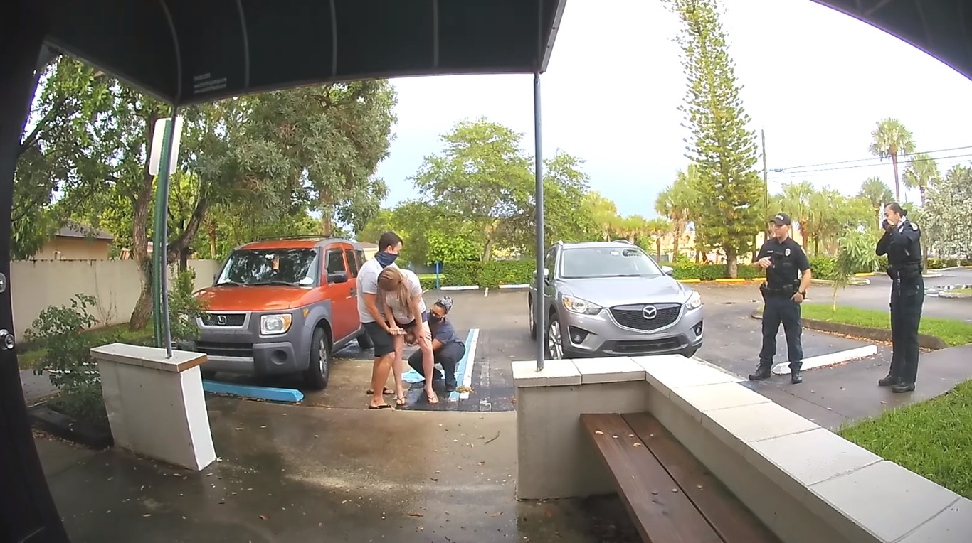 En el vídeo, se puede observar a la matrona Sandra Lovania asistiendo a la madre, cuando se aproximan dos policías que estaban del otro lado de la calle para comprobar que todo estuviera bien. Apaciblemente, Sandra les responde que Susan está bien, que ella es su partera y que está por tener a su niño recién nacido.
