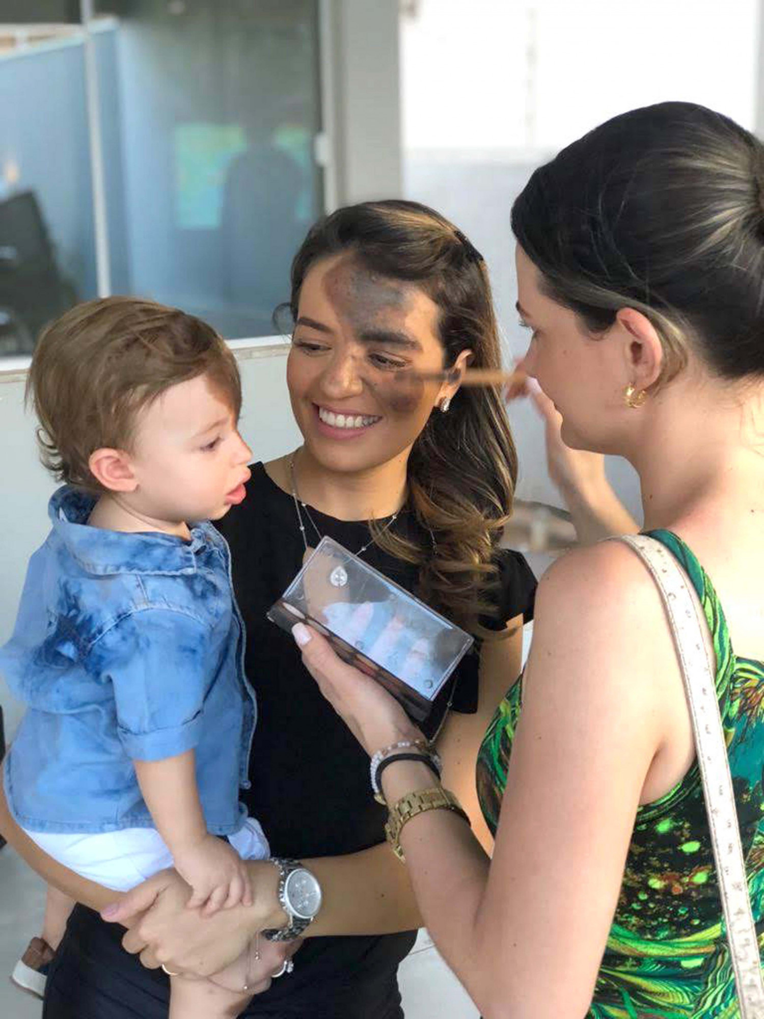 Carolina Giraldelli, de 28 años, de Cassemiro, Brasil, se pintó una enorme mancha oscura en su rostro para hacerla encajar con la de su hijo, Enzo.