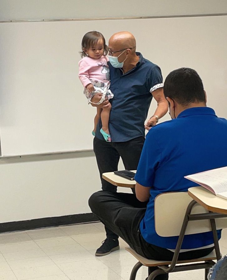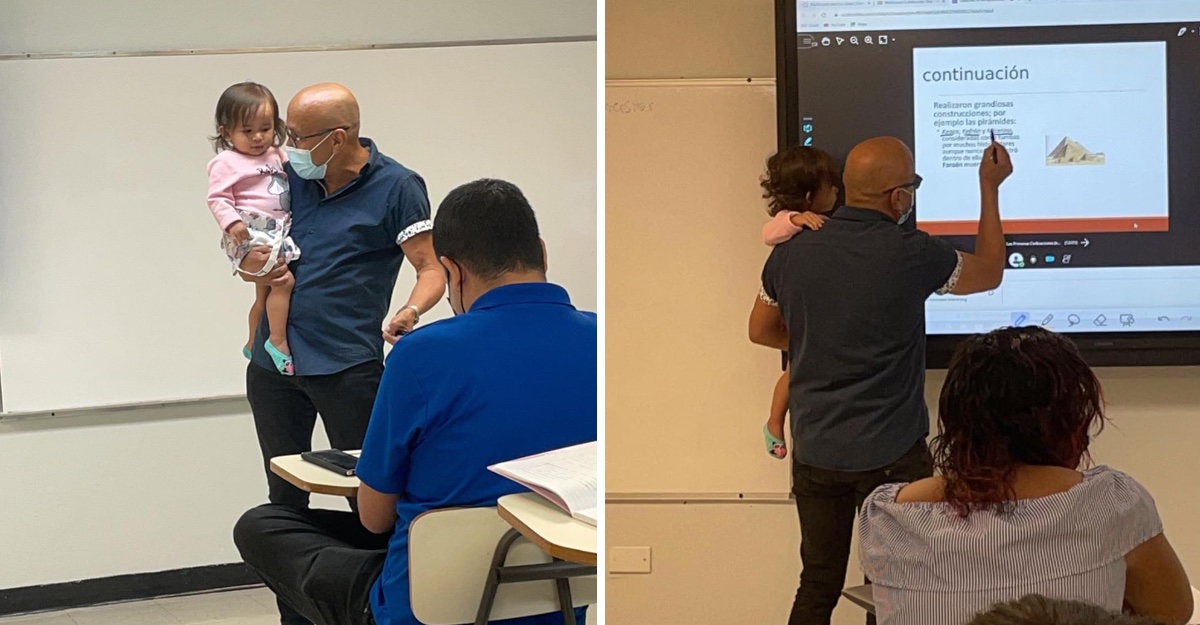 Agradecidamente, tenía la empatía de uno de los instructores de la facultad de la región de Aguadilla quien no dudó en tenderle una mano. La imagen del docente cargando a la niña mientras daba clases se volvió viral de manera rápida en internet y tantos aplaudieron su accionar.