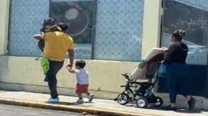 La escena de la familia no dejó a los transeúntes indiferentes, de hecho, uno de ellos no resistió la tentación de sacar su dispositivo móvil y grabar lo que se encontraba ocurriendo.