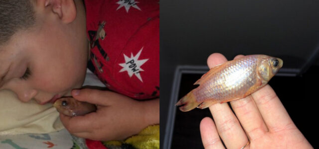 Tristemente su pez dorado no sobrevivió al pasar toda la noche en las manos de Everett fuera de su pecera, a los que sus padres Tori y Corey, debieron explicarle al pequeño que su pez había muerto y que hay animales que requieren de las condiciones mínimas para vivir, en esta situación los peces que requieren del agua.