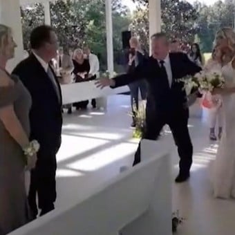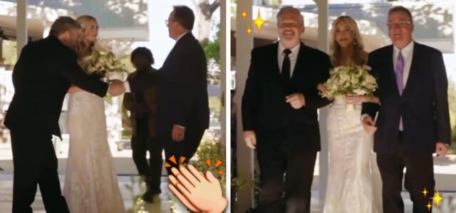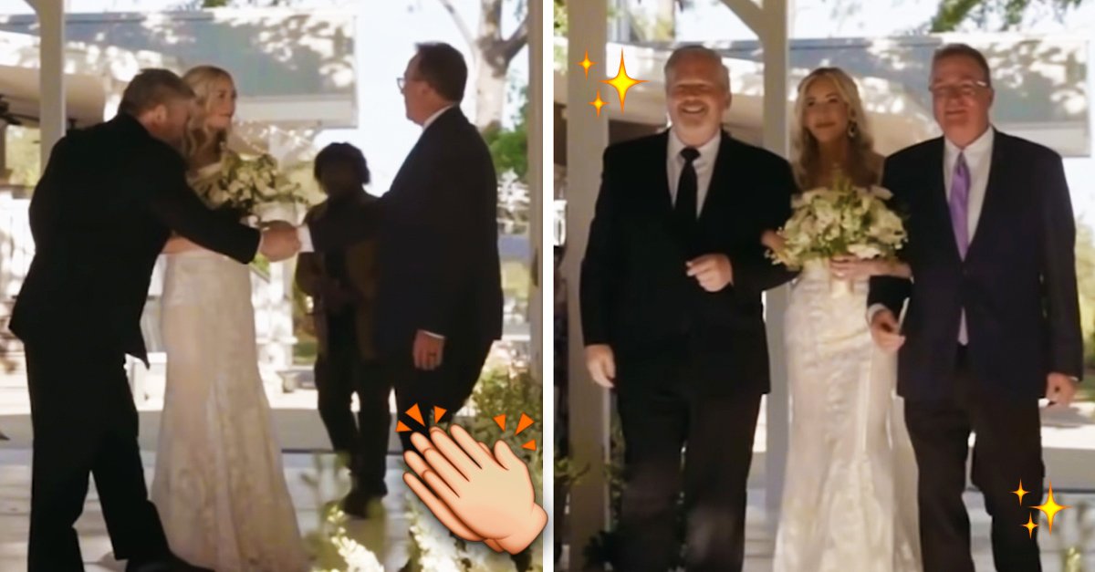 El padre de una novia al detenerse rumbo al altar para invitar al padrastro de su hija a que los acompañe.