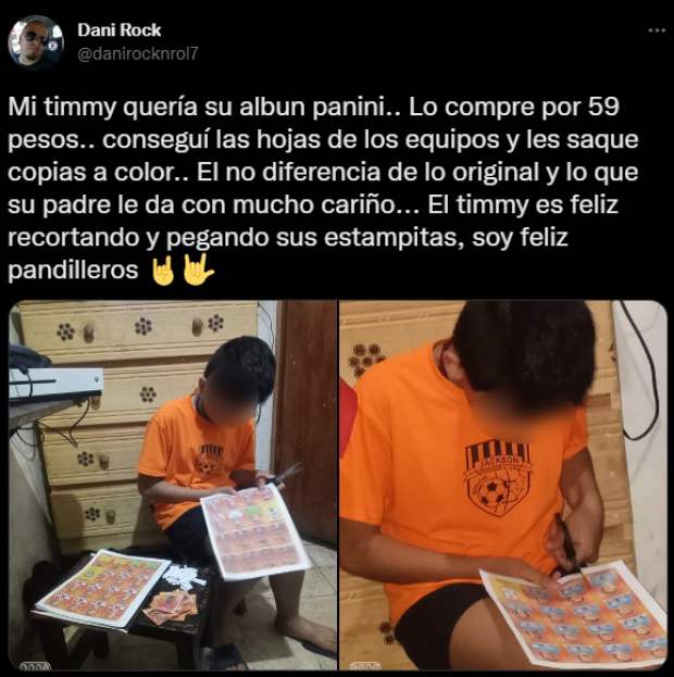 Con un valor de 59 pesos y numerosas impresiones de las estampas de los futbolistas, el padre logró un enorme esfuerzo para que Timmy no se sintiera menos que sus amiguitos, por eso, consiguió las hojas de los equipos autenticos y les sacó copia.