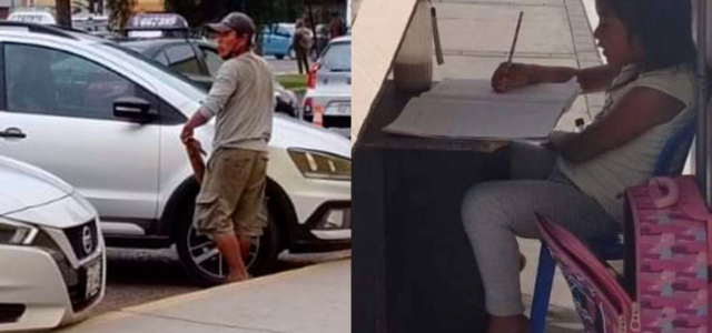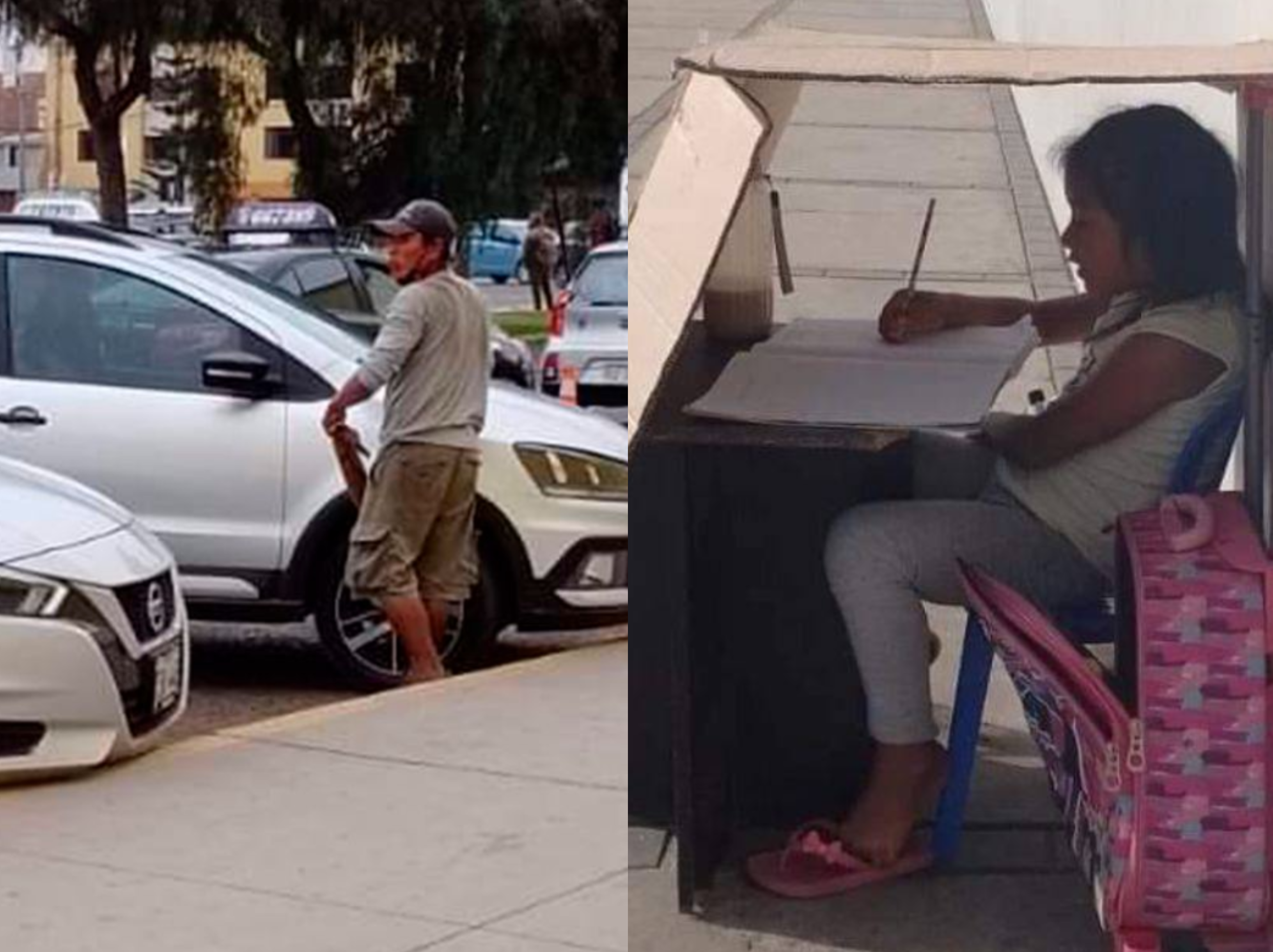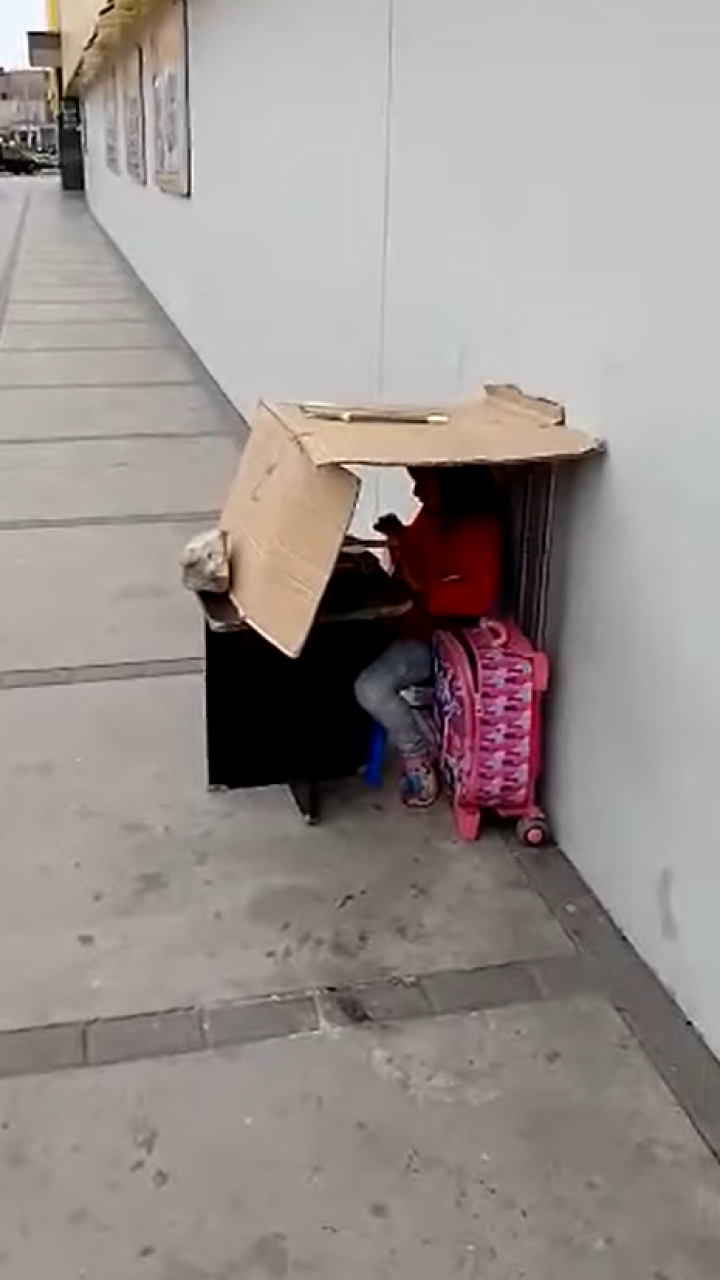Pero la pequeña no está escolarizada y como su padre no la puede dejar sola, tuvo que montarle una mesa para que ella estudiara mientras él trabajaba.