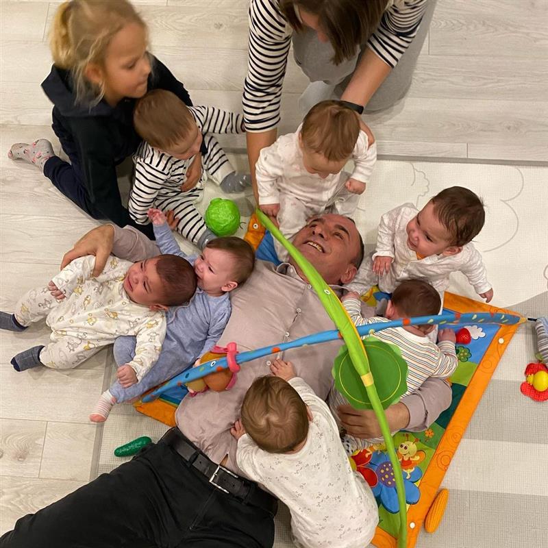 En esta época tienen 11 hijos, aunque la mujer solo dio a luz una, la niña más grande, que tiene de 6 años; el resto son genéticamente de la pareja, pero nacieron de vientres alquilados.